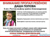 9-летняя Даша Попова пропала в Ростовской области