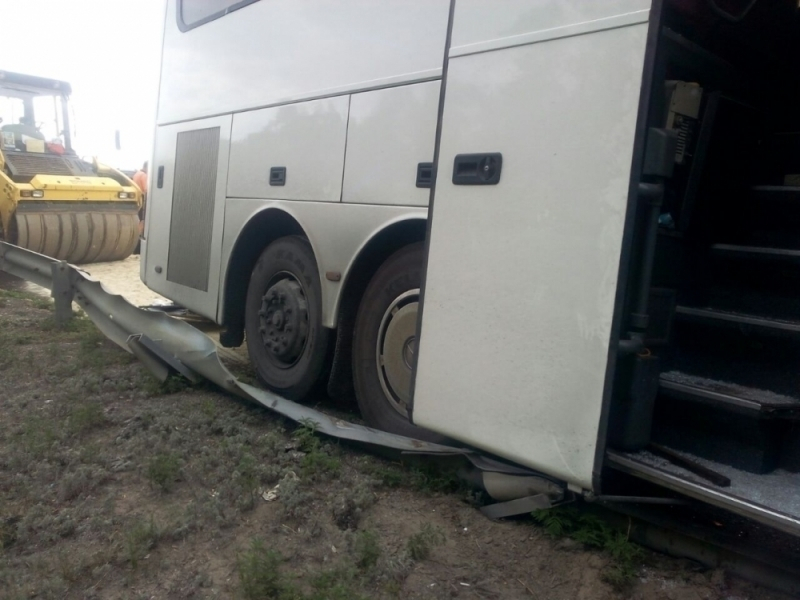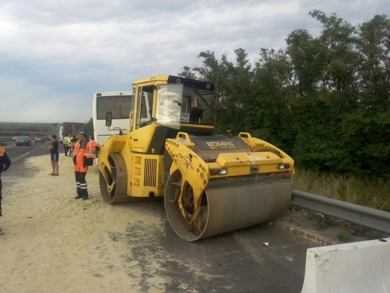 Авария произошла в Миллеровском районе в 16:40. Автобус Новороссийск-Москва столкнулся с грузовым автомобилем КАМАЗ и дорожной техникой (катком).