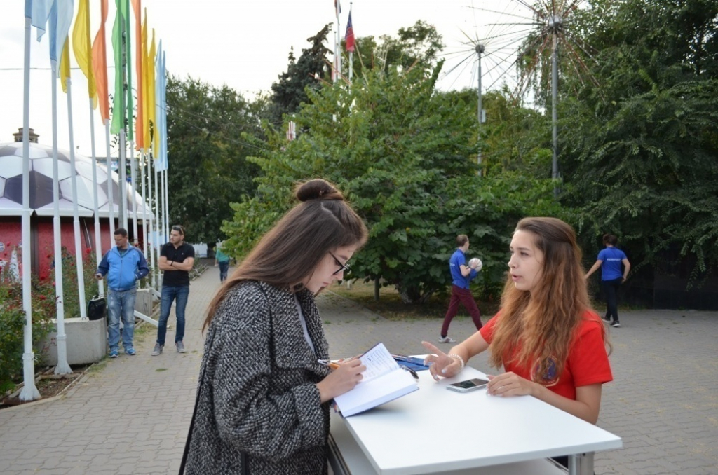 Также волонтеры попробовали забить гол вратарю-волонтеру, а после этого прошла регистрация кандидатов в волонтеры на мундиаль.