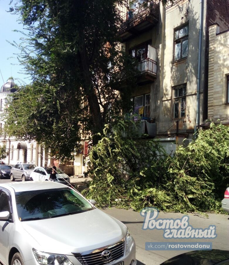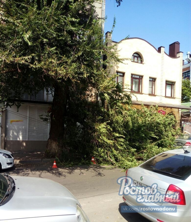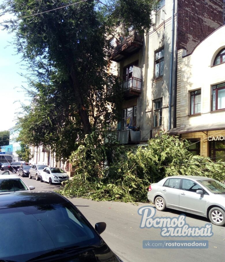 В пятницу, 12 августа, на одной из улиц Старого Ростова, в районе Центрального рынка произошло ЧП. Старое дерево, видимо, не выдержало ночного ветра и упало на проезжую часть.