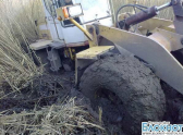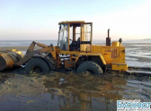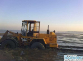 На берегу Таганрогского залива застряли два автопогрузчика. Очевидцы рассказали, что сначала на отмели провалился малый погрузчик, водитель которого решил прокатиться по плесу во время отлива. Чтобы его вытащить приехал водитель на большом погрузчике, но тоже увяз в грязи.