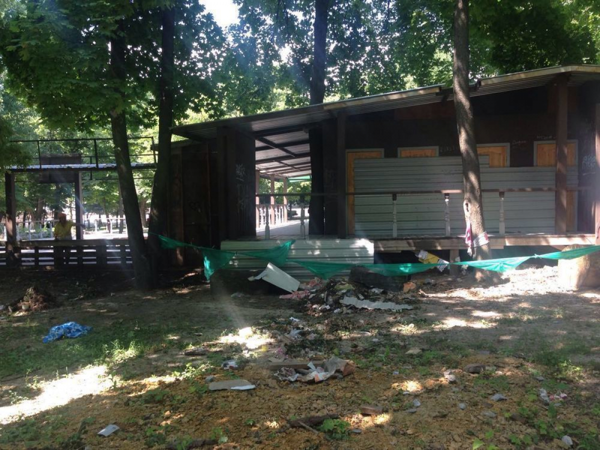 Жительница донской столицы "разбила" в парке имени Октябрьской революции лагерь. Почти неделю она живет в заброшенном здании кафе.