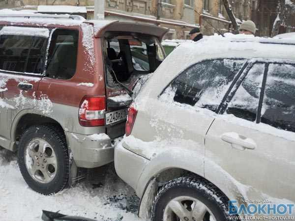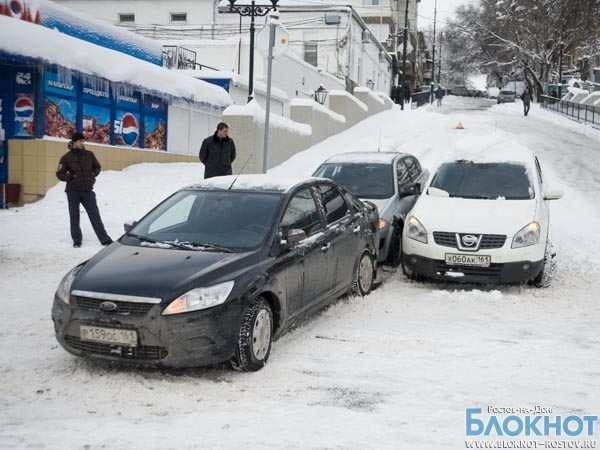 Из-за снегопада в Ростове увеличилось количество аварий, в одном из ДТП столкнулись 10 машин