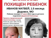 По некоторым данным, похитительница могла выехать за пределы Подмосковья и может находиться в любом городе России. Приметы похитительницы: на вид - около 40-50 лет, телосложение среднее, волосы русые, прическа каре. Была одета в темные джинсы, темную куртку с красными вставками, резиновые галоши на босу ногу. Всем, кому что-либо известно о местонахождении разыскиваемой женщины, просьба позвонить по номерам, указанным в ориентировке.