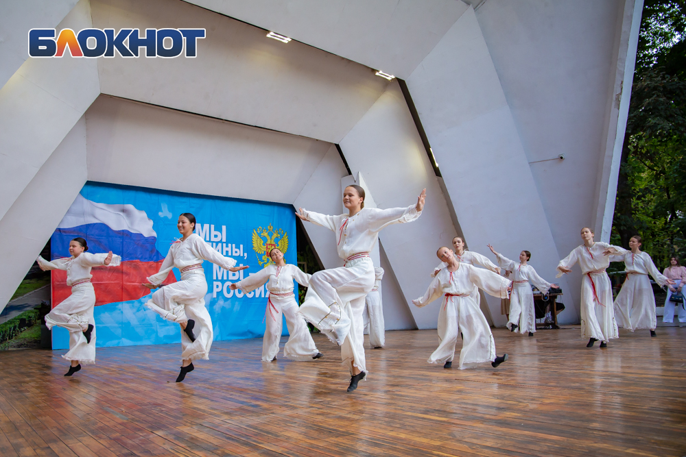 В парке имени Горького на сцене прошло выступление детских творческих коллективов. Зрители увидел русские народные танцы, патриотические песни и шествование с флагом.