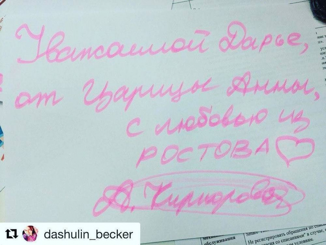 «Как хорошо, что есть связи, я дождалась автографа от самой яркой розовой звезды города Ростова-на-Дону. Спасибо, Анна батьковна. Я буду с ним спать, есть, дышать», - прокомментировал пользователь в социальной сети Instagram.