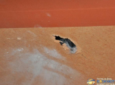 На территории таможенного поста разбиты стекла, повреждены двери, стены и мебель. На стенах - следы от осколков. На линии таможенного контроля легковых транспортных средств - воронка от снаряда. Повреждения есть не только снаружи, но и внутри помещений МАПП.