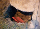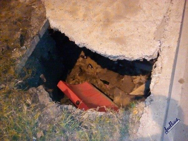 На снимке видно, что в одном из провалов уже скопилось много мусора, в яму также провалилось защитное ограждение, которое должно было уберечь пешеходов от опасности.