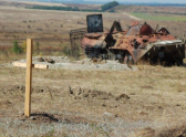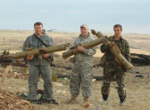 На фото: Безымянные могилы людей, подрывающихся на минах, саперы Миус Фронта под Мариновкой: в руках «отказные» ПТУРы-гранатометы, похожие на тот, при взрыве которого погиб таганрожец.