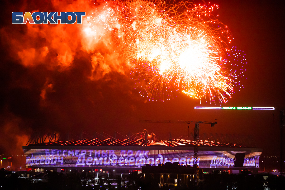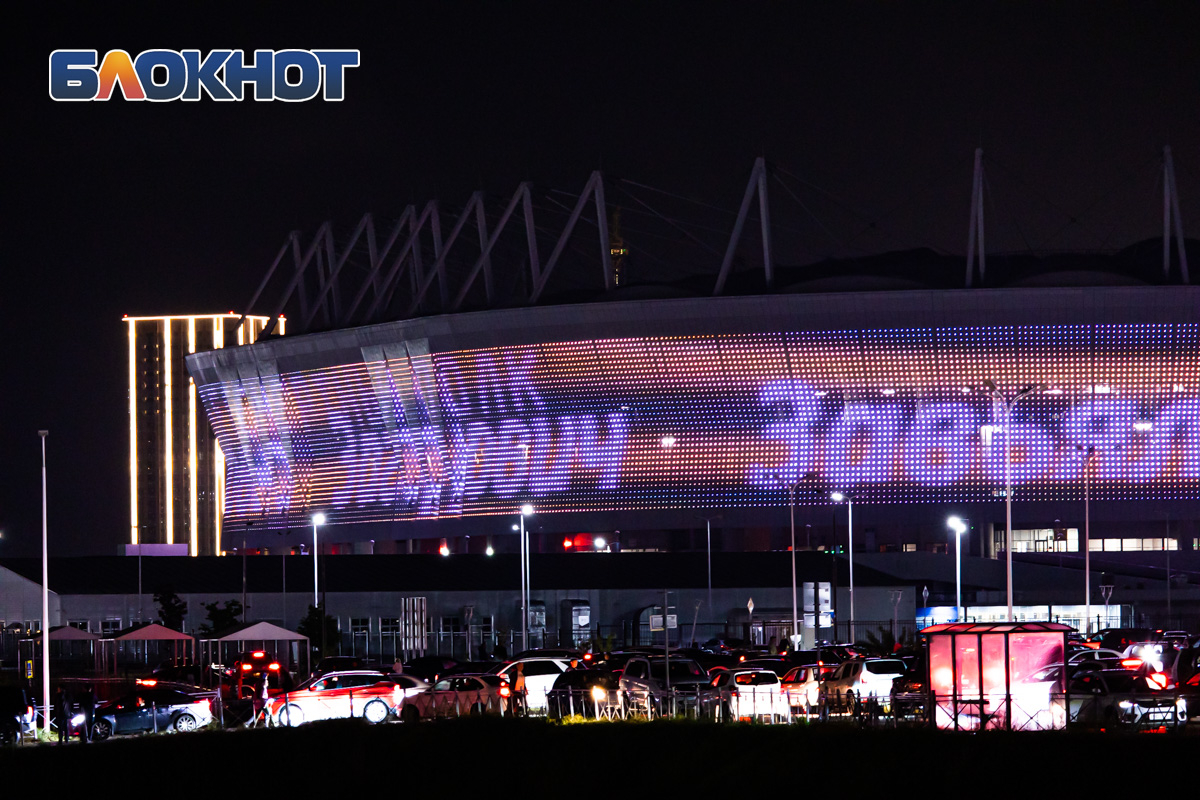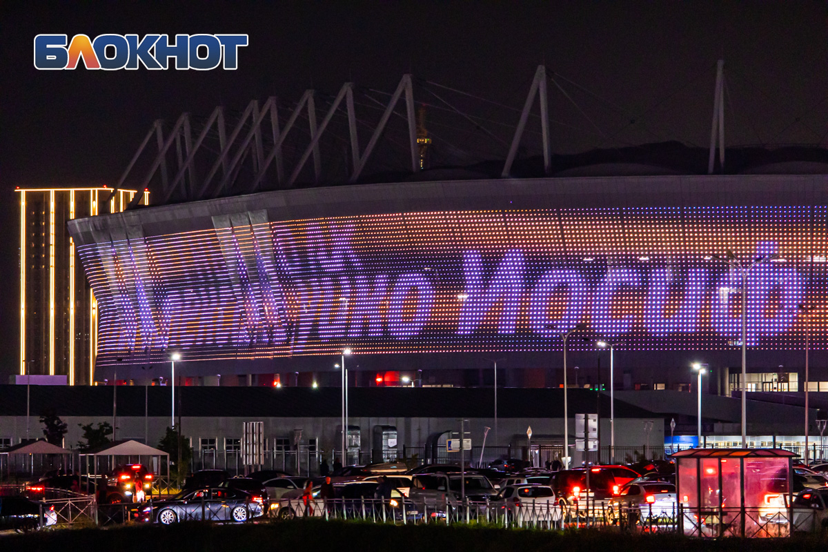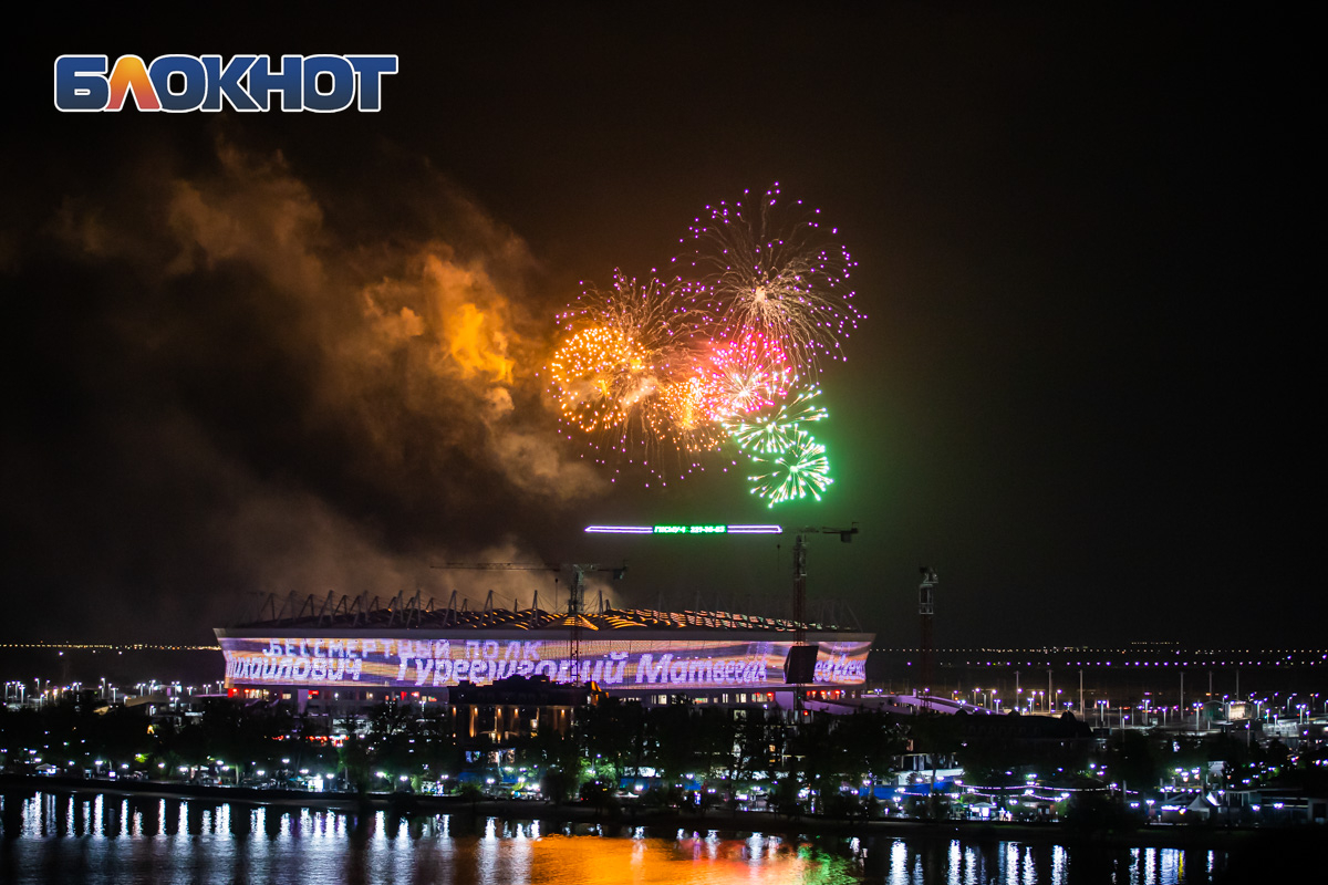 А на здании «Ростов Арены» транслировался бессмертный полк, где на фоне изображения георгиевской ленты были написаны имена героев, воевавших во времена Великой Отечественной волны.