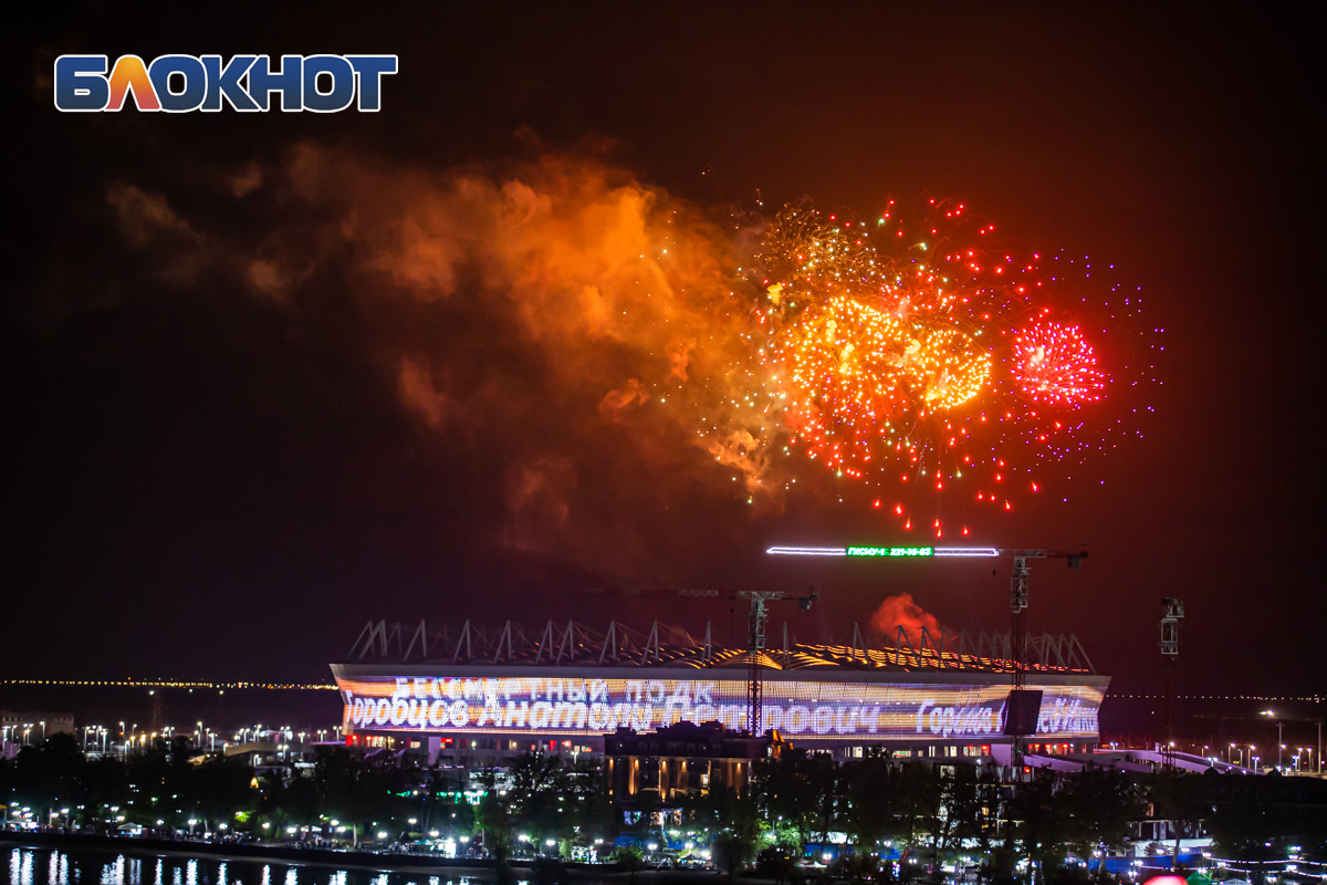 После всех мероприятий ростовчане огромной колонной прошли на Набережную и левый берег Дона, чтобы увидеть финал этого праздника – салют. Яркие огни озарили небо над городом.