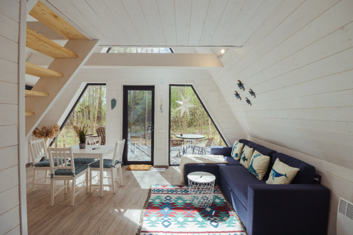 Дома в формате A-frame* или так называемые А-образные дома давно известны во многих странах. Еще в СССР на базах отдыха и дачных участках строили высокие треугольные домики, с любовью называя их «шалашом» или «палаткой». Многие в детстве наверняка мечтали заглянуть в такой дом с крышей до земли, поэтому неудивительно, что спустя годы мода возвращается, и слегка забытый «шалаш», но уже в более современном и практичном исполнении вновь оказался на пике популярности в России.