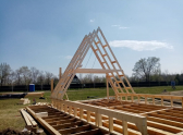 Дом А-frame* совмещает в себе оригинальность и функциональность. Его запросто можно поместить на маленький участок, а небольшой вес строения сэкономит бюджет на фундаменте. Дом построен по каркасной технологии из строганной доски камерной сушки. Такой каркас является наиболее жестким, поэтому доски со временем не чернеют и в конструкции их не «ведёт», что продлевает срок службы готового строения. А благодаря утеплению в 150 мм в доме А-frame* можно с комфортом жить круглый год и не бояться холодов или дождливой погоды.