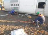 Сегодня, 31 августа, около 5:50 многотонная машина слетела с дороги в кювет и опрокинулась на бок. В тот момент в салоне находилось 47 человек — 12 из них пострадали. Сейчас они в больнице.