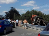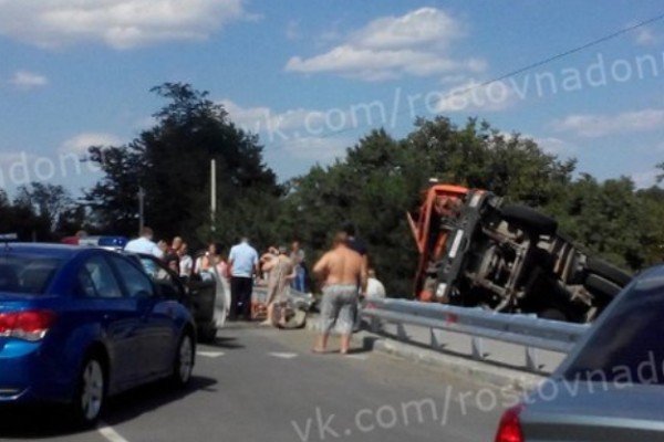 Под Ростовом бетономешалка вылетела за пределы дороги и перевернулась