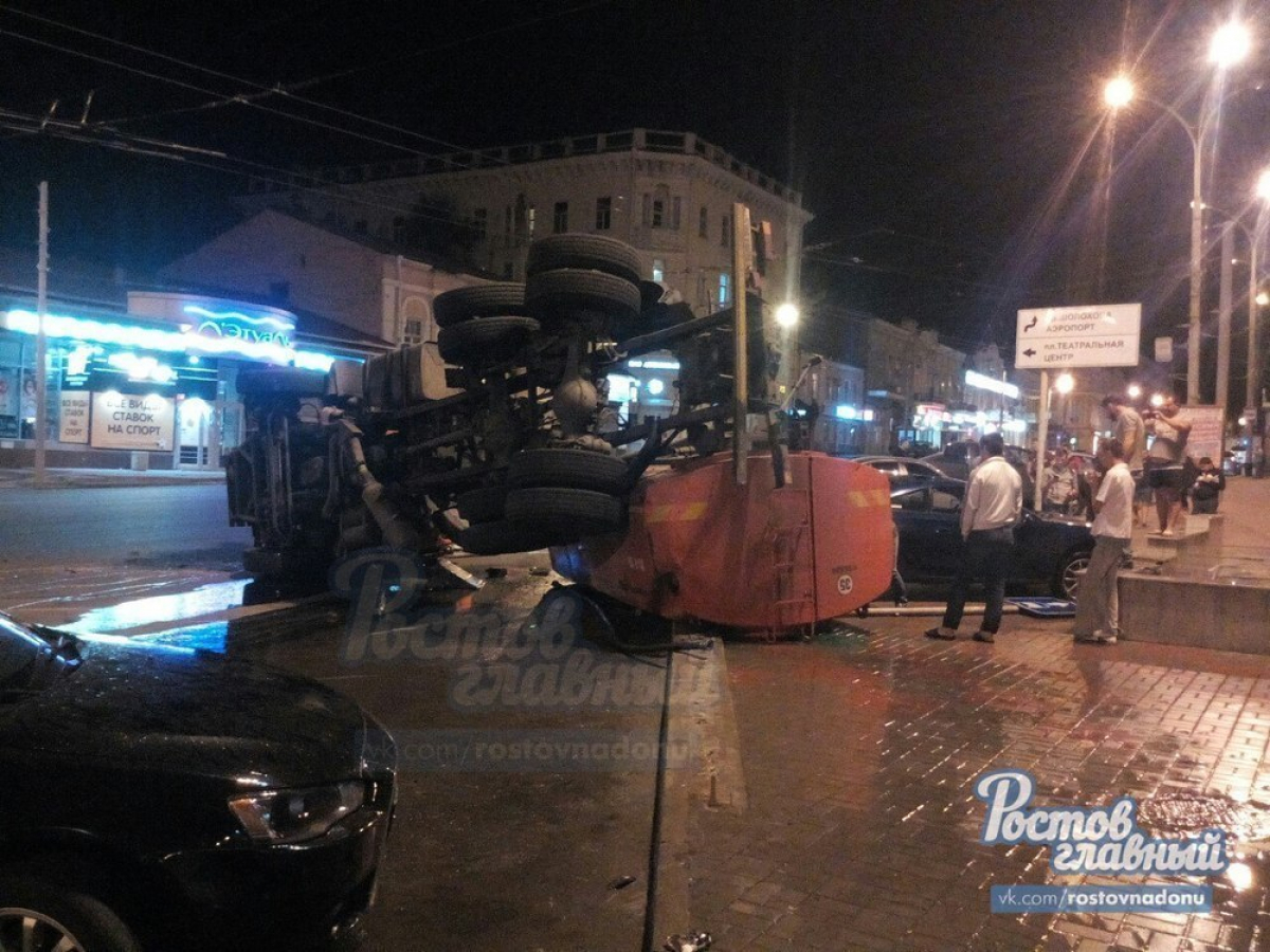 В ночь со среды на четверг на площади Карла Маркса в Ростове произошло ДТП с участием большегруза. В самом центре Ростова перевернулся «КамАЗ».