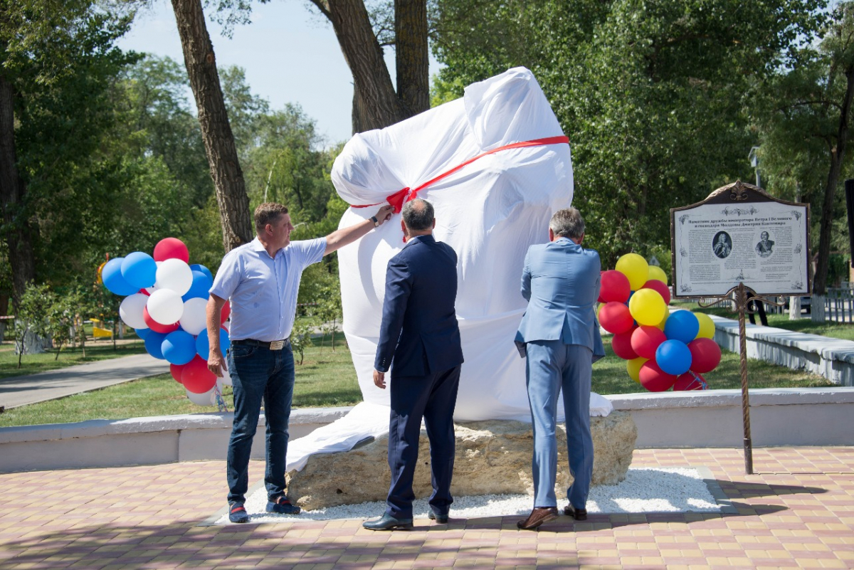 В международный день дружбы 30 июля в Волгодонске Президент республики Молдова Игорь Додон принял участие церемонии открытия памятника Дружбы императора Петра I Великого и господаря Молдовы Дмитрия Кантемира.