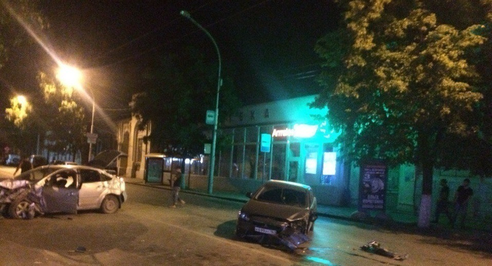 В понедельник, 18 июля, ночью в Ростове на Советской столкнулись Ford Focus и Mitsubishi Lancer.