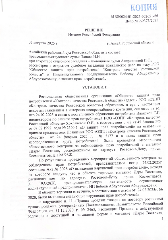 "Общество защиты прав потребителей "Контроль качества Ростовской
