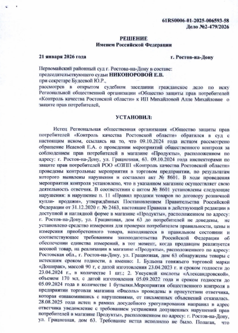 Общество, вчера, 22:39 Решение Первомайского районного суда Ростова-на-Дону №2-479/2026 Р Е Ш Е Н И Е Именем Российской Федерации Наш сайт в соцсетях: Telegram, Дзен, MAX. Новости на Блoкнoт-Ростов-на-Дону