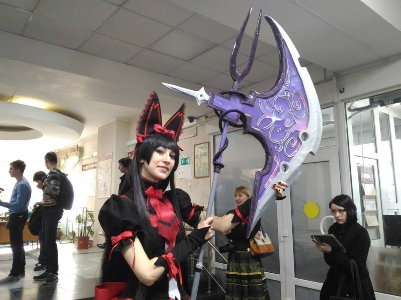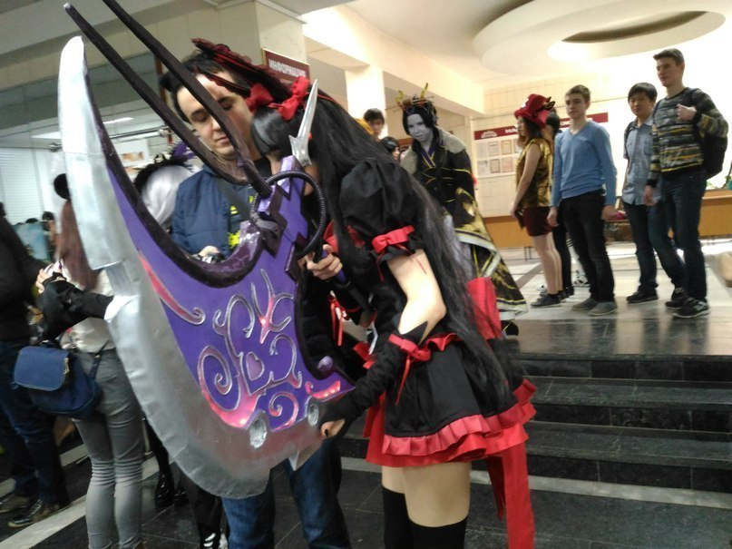 Вы знаете, что такое косплей? Это перевоплощение в какого-либо персонажа аниме – японской анимации. Так вот, помимо котов и кошечек, зрители превращались в героев аниме. Каждый старался быть, как можно больше, похожим на своего персонажа, поэтому можно было даже наблюдать картонные или пластмассовые модели мечей, жезлов и различного вооружения огромных размеров.