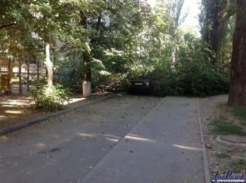 Старое дерево рухнуло на детскую площадку в Александровке и придавило автомобиль