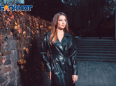 Саша выбрала для прогулки стильный кожаный плащ, который прекрасно контрастирует с осенним пейзажем.