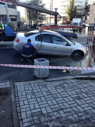 - Только что (8.25), на пересечении Красноармейская-Доломановский машина мордой провалилась под асфальт,бежит водичка,пар с машины,девушка-водитель,сидит и смотрит только вперед!!!(минуты две держалась за руль и смотрела в перед)!!!фото не успел, - прокомментировал ростовчанин.