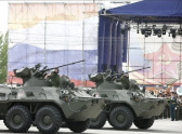 В параде приняли участие подвижный береговой ракетный комплекс «Бастион», артиллерийская система обороны «Берег», бронеавтомобили «Тигр», бронетранспортеры БТР-82А, артиллерийские установки, реактивные системы залпового огня «Смерч», зенитно-ракетный комплекс «Оса».