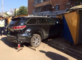 В Ростове внедорожник с номерами «АРО» врезался в три машины и протаранил ларек. Фото