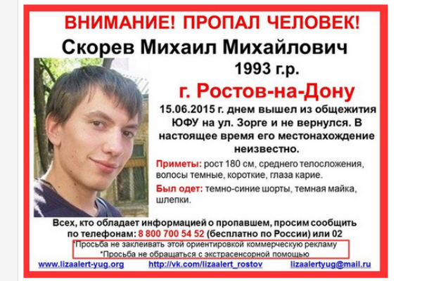 В Ростове волонтеры ищут 22-летнего Михаила Скорева