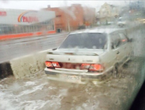 Автомобилистам, чей путь пролегает по улице Малиновского, снова пришлось плыть к пункту назначения.