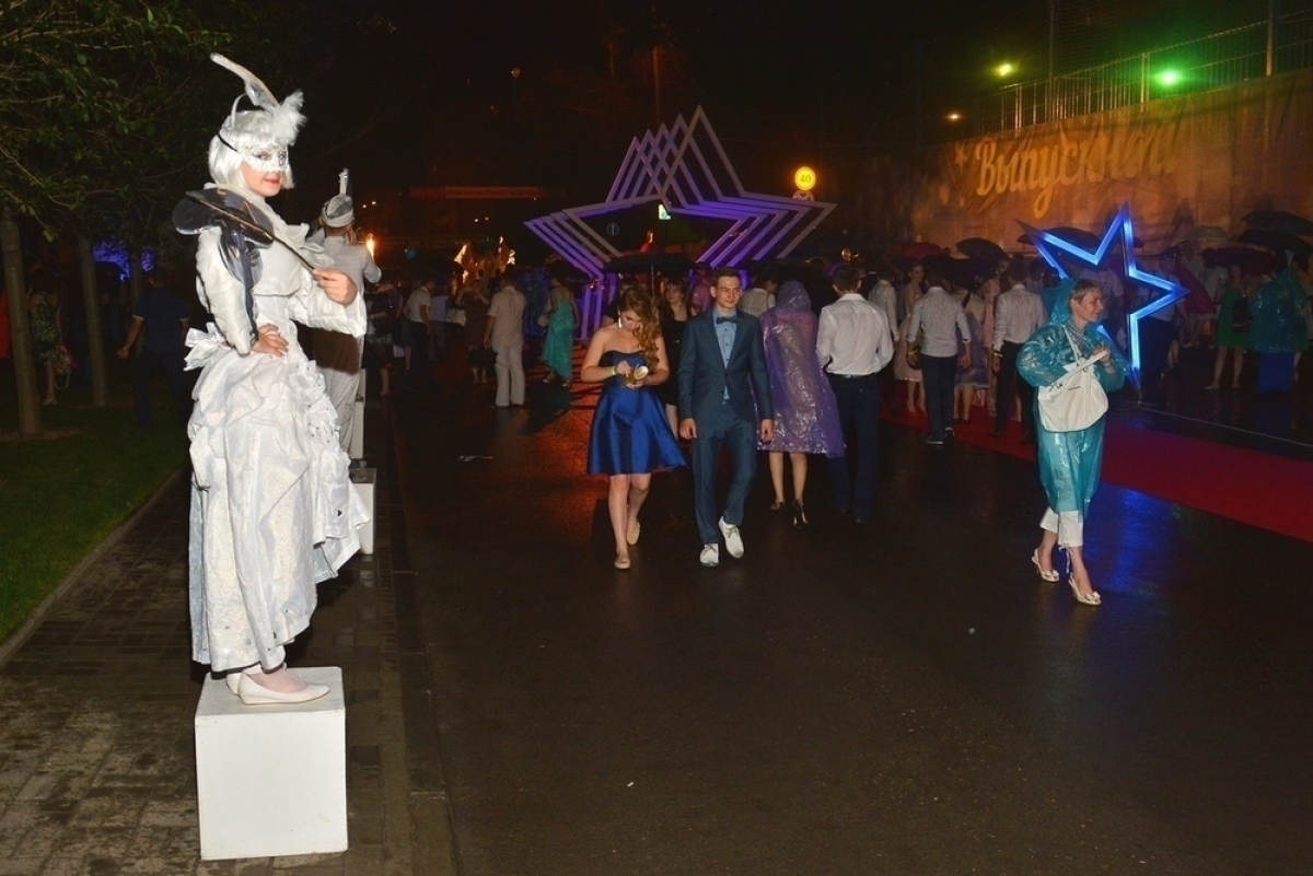 Вступившим во взрослую жизнь ростовчанам скучать не пришлось. На городской набережной для них было подготовлено множество развлекательных площадок. Перед территорией, где проводился выпускной, постелили самую настоящую красную ковровую дорожку, для того, чтобы виновники торжества смогли почувствовать себя настоящими звездами.
