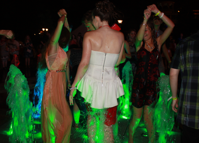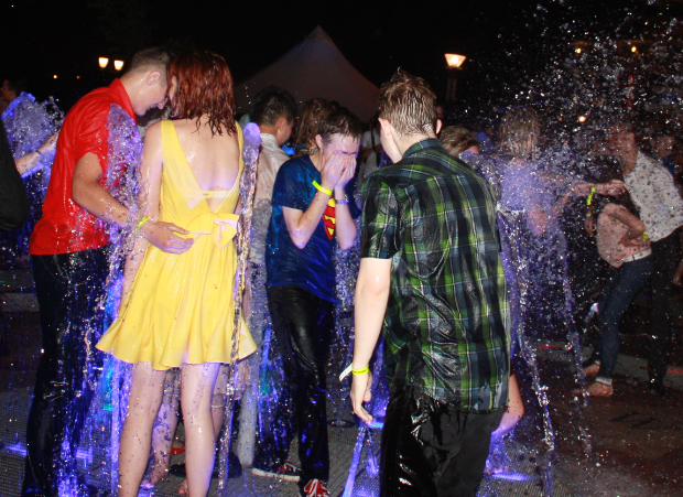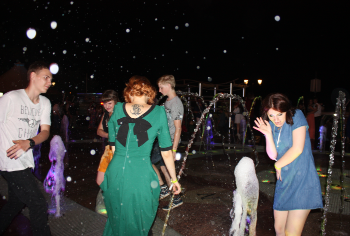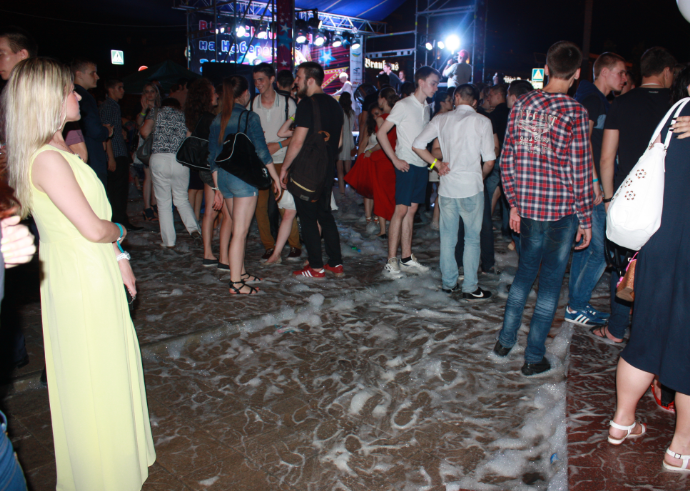 На набережной была установлена еще одна сцена - напротив светящегося фонтана. Многие прибывшие на праздник были не прочь освежиться - дождь к тому времени уже закончился. Позже здесь прошла пенная вечеринка и дискотека.