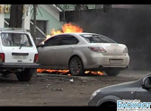 В Ростове сгорели три машины, очевидцы сняли полыхающее авто на видео