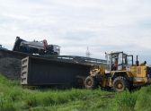 Сегодня около утром пяти часов утра на телефон оперативного дежурного Ростовской областной поисково-спасательной службы поступило сообщение о том, что на 1002 км. федеральной трассы М4 «Дон» груженый щебнем грузовик слетел с проезжей части.