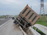 В Ростовской области грузовик со щебнем «повис» на отбойнике