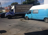 16 сентября на Театральном 60 произошла авария. Столкнулись три автомобиля: два грузовых и легковушка.