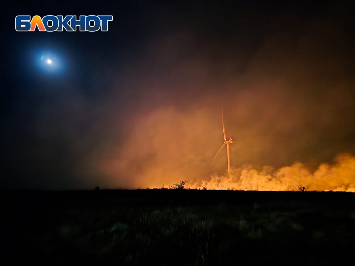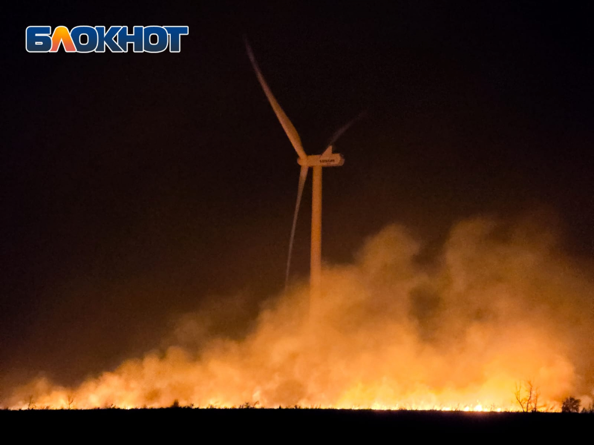 Возле Белой Калитвы горит поле с ветряками