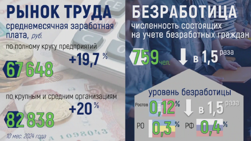 Помимо этого, Алексей Логвиненко сообщил о позитивных изменениях на бирже труда. Также он подчеркнул, что в 2024 году был зафиксирован самый низкий уровень безработицы на 20 лет. Он составил 0,12%, а в Ростовской области 0,3%.