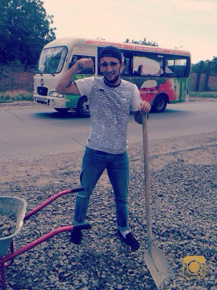 Фотографии на которых запечатлено, как горожанин проводит дорожные работы, были опубликованы в группе в социальных сетях "Ростов-на-Дону | Главный".